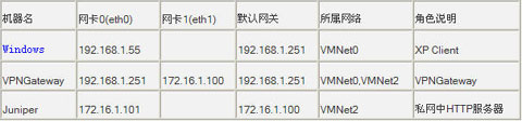其中,192.168.1.0/24網段模擬外網,windows xp模擬外網撥號的VPN客戶機。