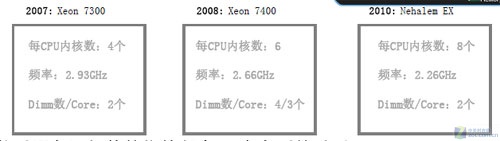 從2007年推出的至強7300到2008年的至強7400,直至今年問世的至強7500,其CPU每個內核訪問的內存條數均未超過2個。