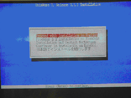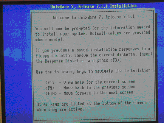 7.系統進入Unix Ware 7.11 的安裝界面: