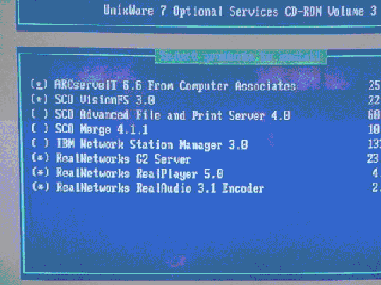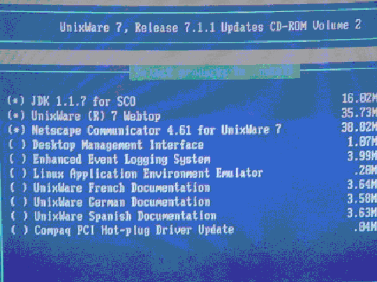 1.接下來是UnixWare 7.11 的一些應用程序的安裝,請放入第二張光盤:
