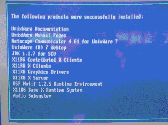 8.安裝完后重啟服務器,系統便進入Unix Ware 7.11 的界面。界面如下: