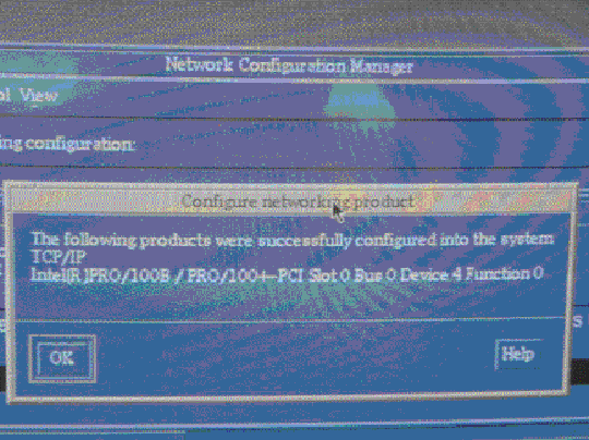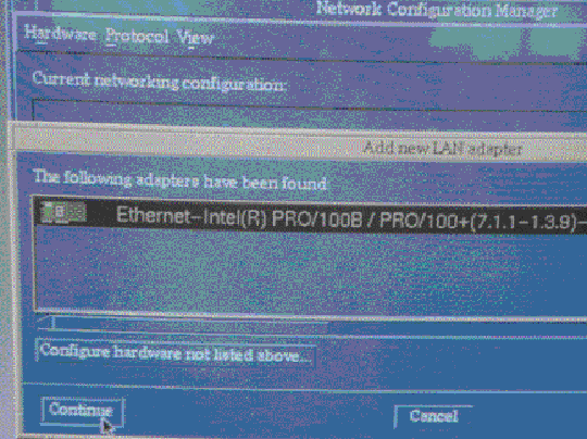 如果我們在系統檢測到intel pro 100+網卡時,用系統檢測到的驅動時,在系統配置完mouse重啟后,會出現如下的錯誤: